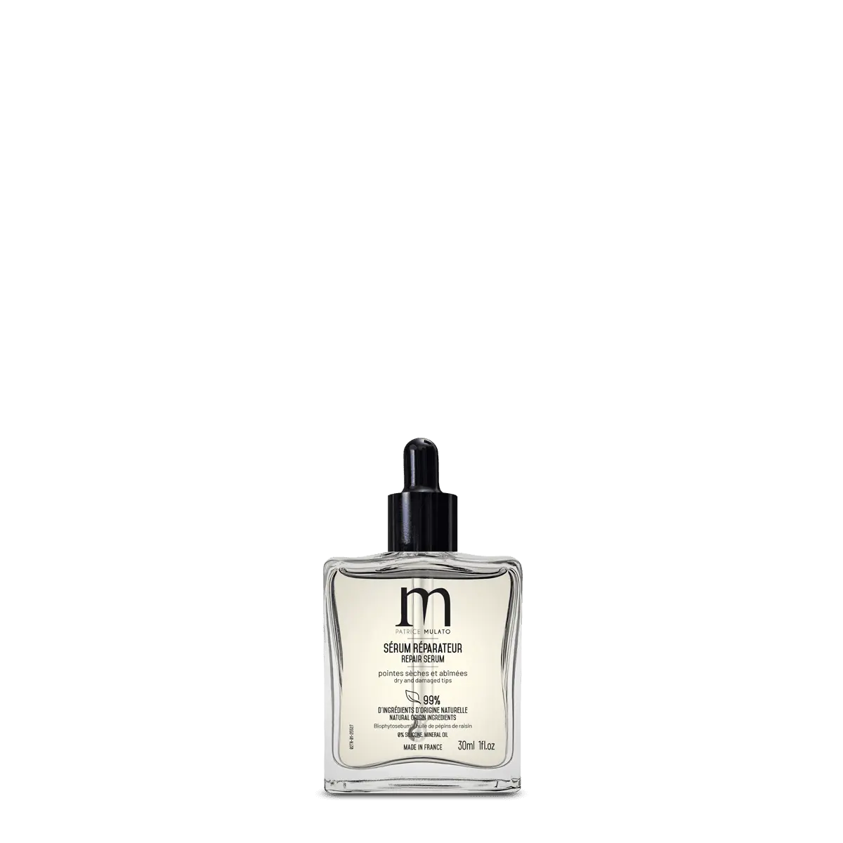 Le sérum réparateur Patrice Mulato répare et nourrit les pointes sensibilisées grâce à l’action combinée du biophytosébum®, alternative végétale au silicone de synthèse, et de l’huile de pépins de raisin. 86/100 Yuka 🥕